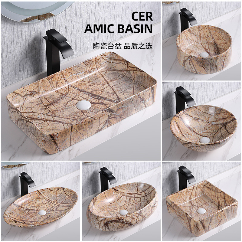 カウンタートップ洗面台浴室セラミック洗面台アート小型洗面台バルコニー正方形円形シングル洗面台家庭用