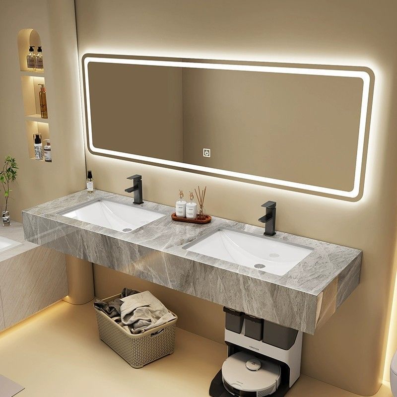 岩板洗面台 壁掛け式一体型洗面器 ホテル浴室洗面台 バルコニー洗面器 ライトラグジュアリースタイル