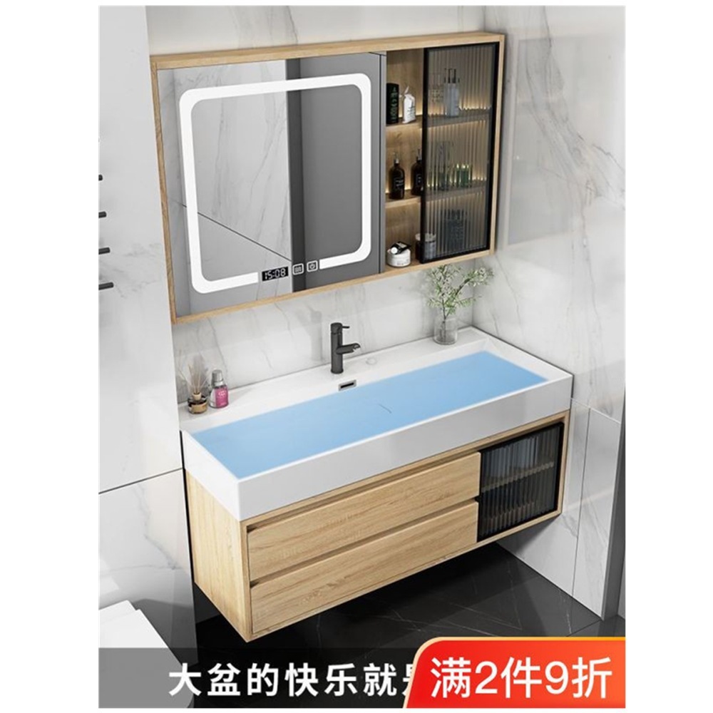 2023原木色実木浴室キャビネットナノ岩石一体盆トイレセット洗面台洗面台セット