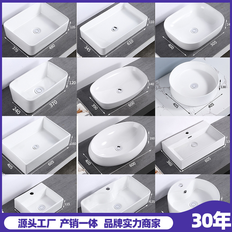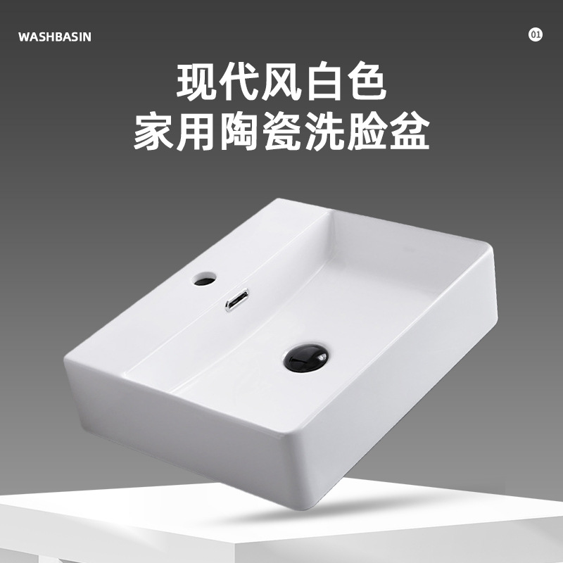 家庭用セラミック洗面台バルコニー浴室半吊り洗面台象嵌洗面台正方形新製品半埋め込み洗面台