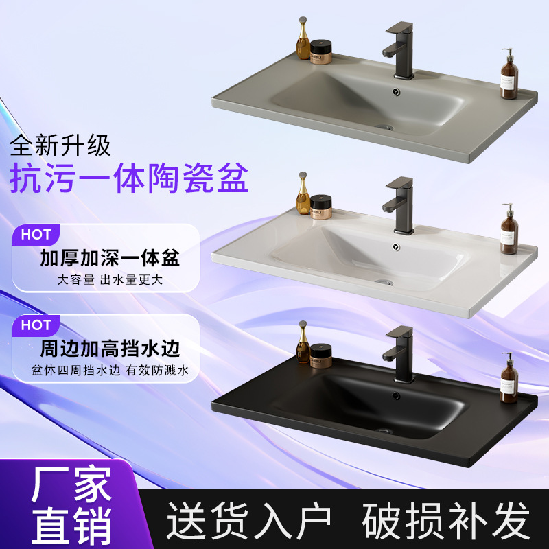 洗面台 シングル洗面器 一体型セラミック洗面台 台中半埋め込み浴室洗面台 家庭用正方形