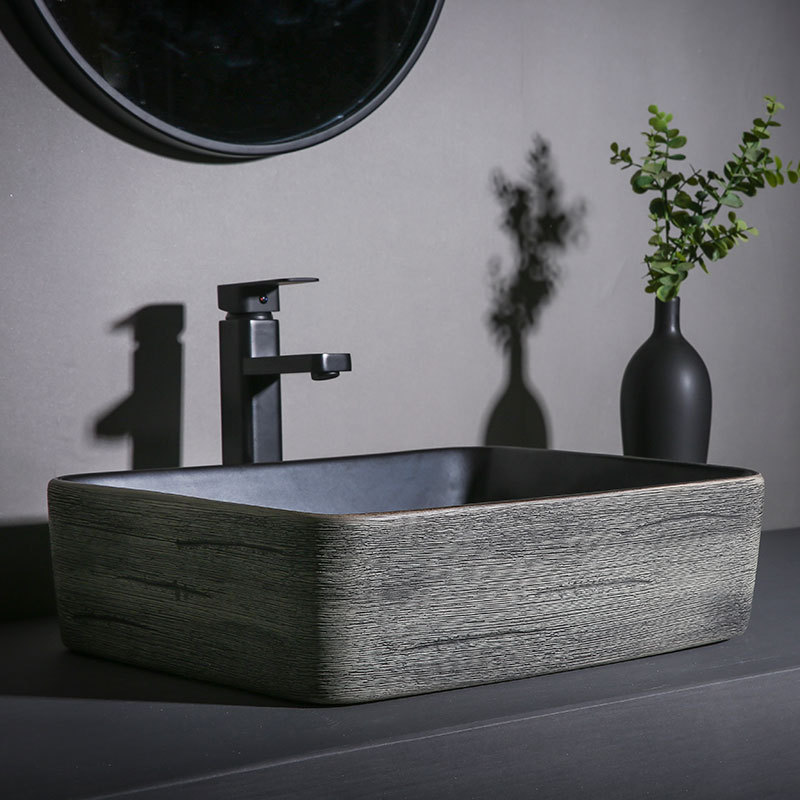 黒い陶磁器の卓上盆のレトロな洗面器の洗面器のトイレの家庭用洗面器のベランダの洗面器の屋外の新商品
