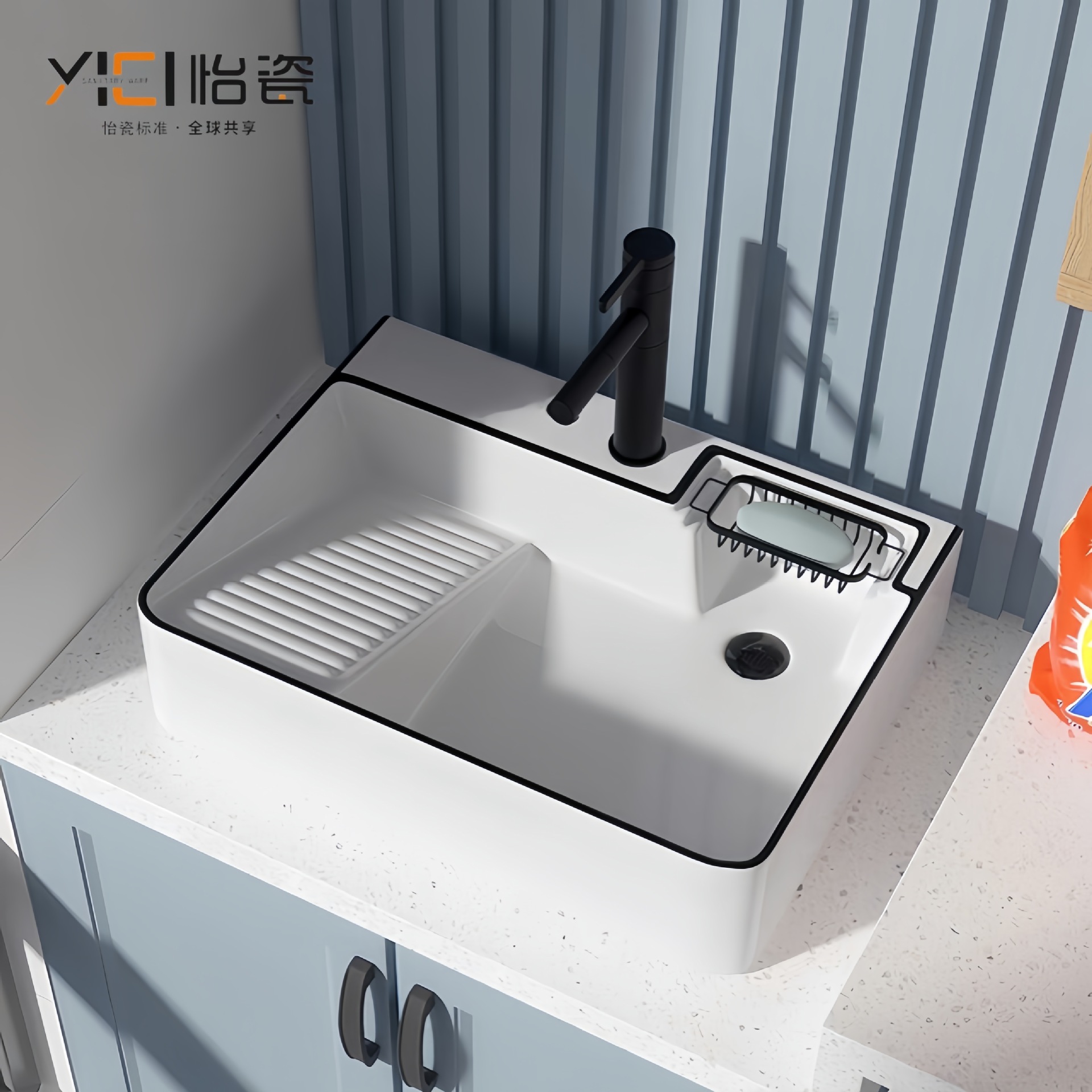 W * セラミック洗濯盆洗濯板付き洗濯槽家庭用水槽の小さいサイズの長方形の台下盆洗濯