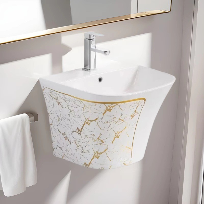 壁のベランダの洗面器の小さいタイプの彩金のトイレの洗面器の陶磁器の洗面器の単盆の簡易的な洗面台