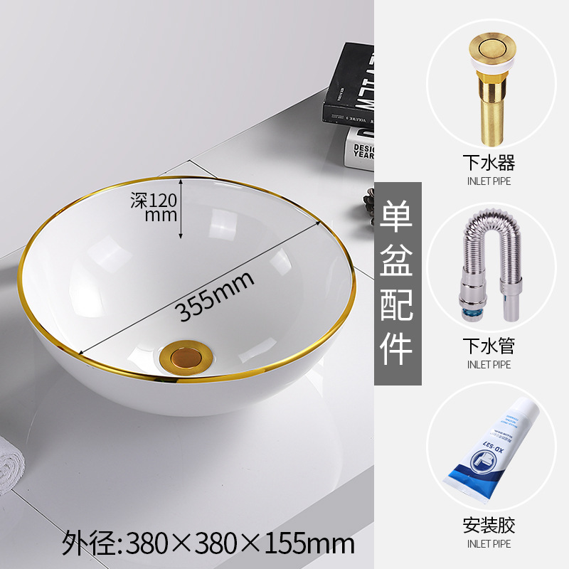 金辺ヨーロッパ式陶磁器洗面器洗面器シングルサイズヨーロッパ式ミニテーブル洗面器円形新品