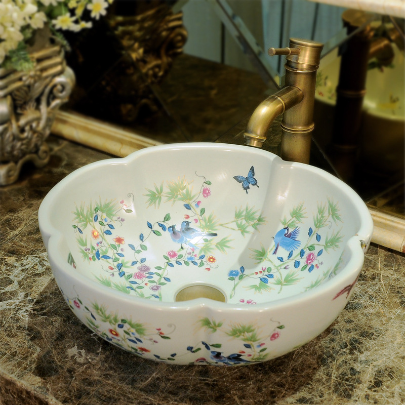 セラミックカウンタートップ洗面器オーバルレトロ洗面器家庭用カウンタートップ洗面器浴室洗面器景徳鎮洗面器