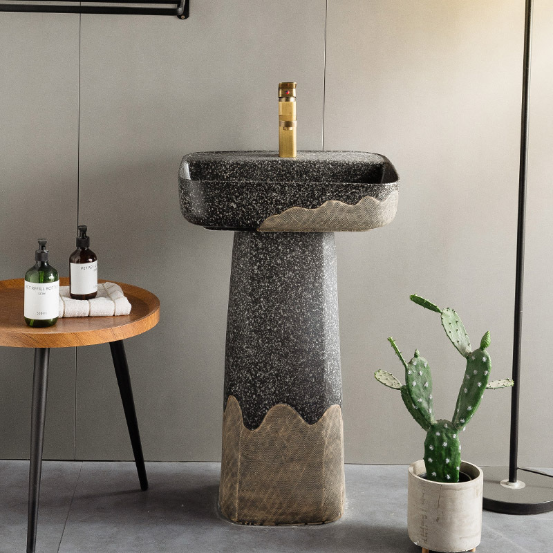 屋外洗面器庭園トイレ芸術柱式洗面器一体床置き式洗面池新製品