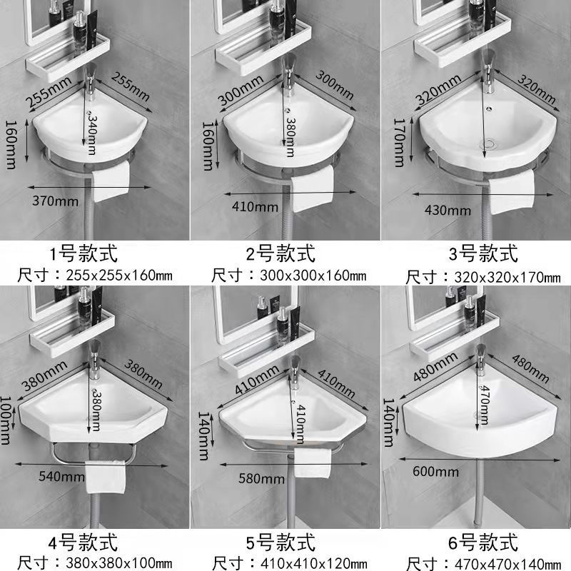 三角形の洗面器の壁の隅の支柱の洗面器の小戸型は壁式の大きいサイズの回転角の陶磁器の洗面器の威東を掛けます。