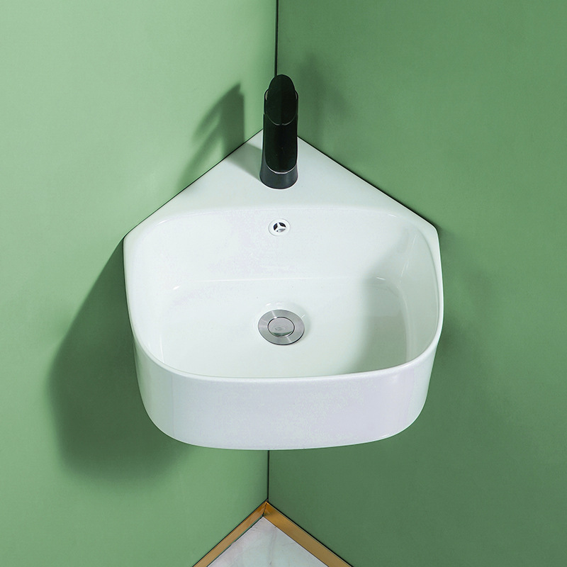 小戸型壁掛け式洗面器ベランダの壁の角に陶磁器の洗面器の三角洗いを深めます。