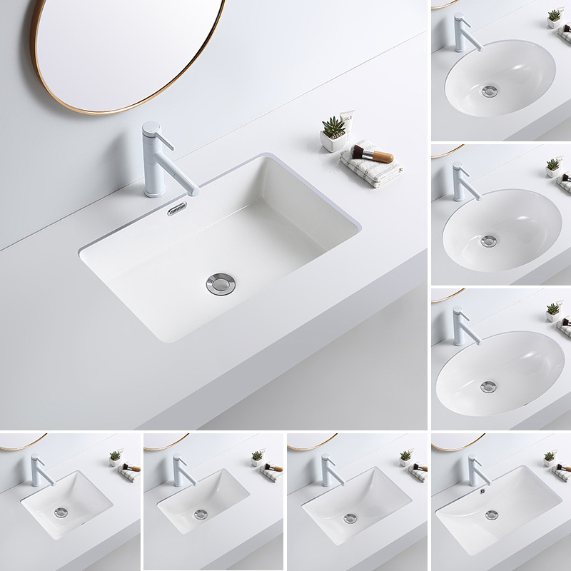 アンダーベンチ洗面器セラミックサイズ楕円形埋め込み正方形洗面器シングル洗面器バスルームホームバルコニー工場