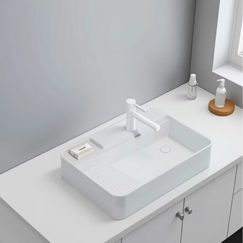 横進水セラミック台上盆洗濯板付きベランダ洗濯盆家庭用台盆左右進水洗面器