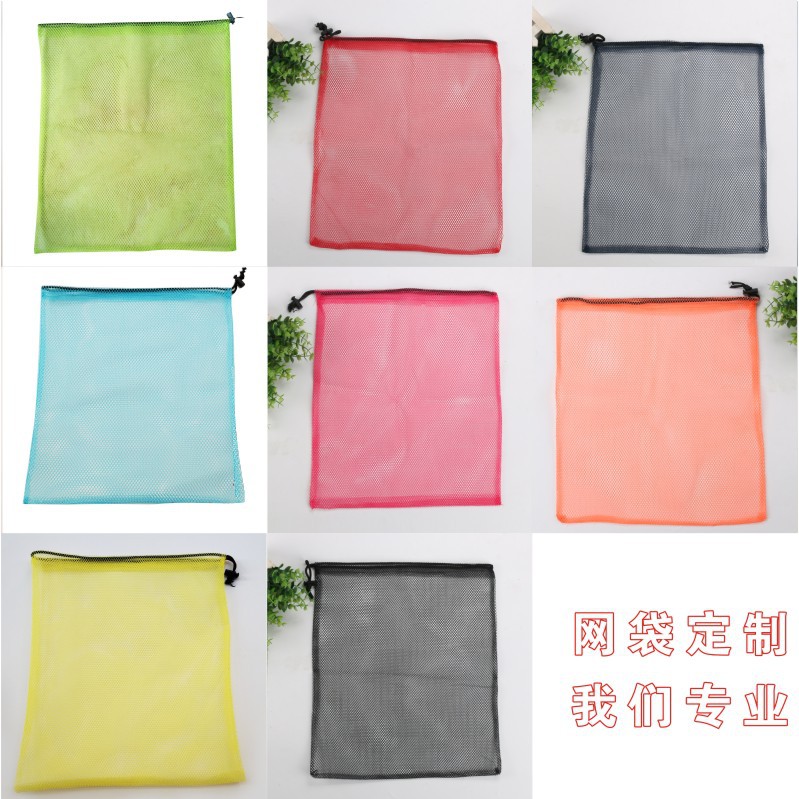 スポットマルチカラーナイロンポリエステルメッシュバッグ巾着バックパックメッシュメッシュ収納メッシュバッグサポートカスタマイズ
