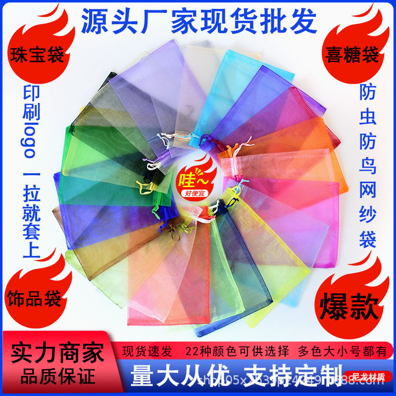 義烏スポット卸売オーガンザメッシュジュエリーバンドルポケット防鳥マルチカラーギフト収納ジュエリーバッグ