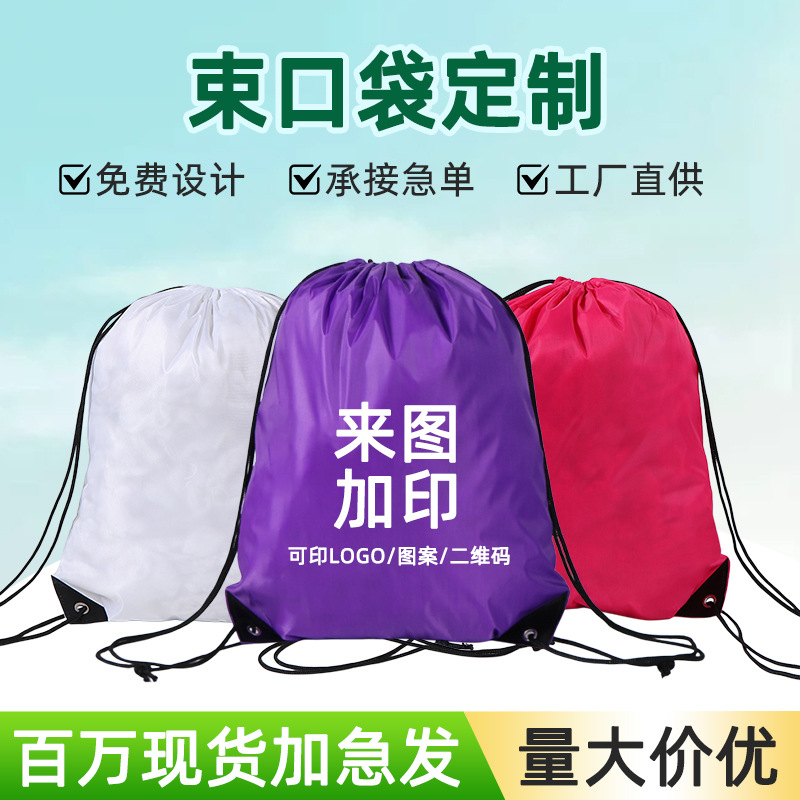 現物ポリエステルポケットカスタムロゴひも運動ランドセル防水ロープナイロン収納袋