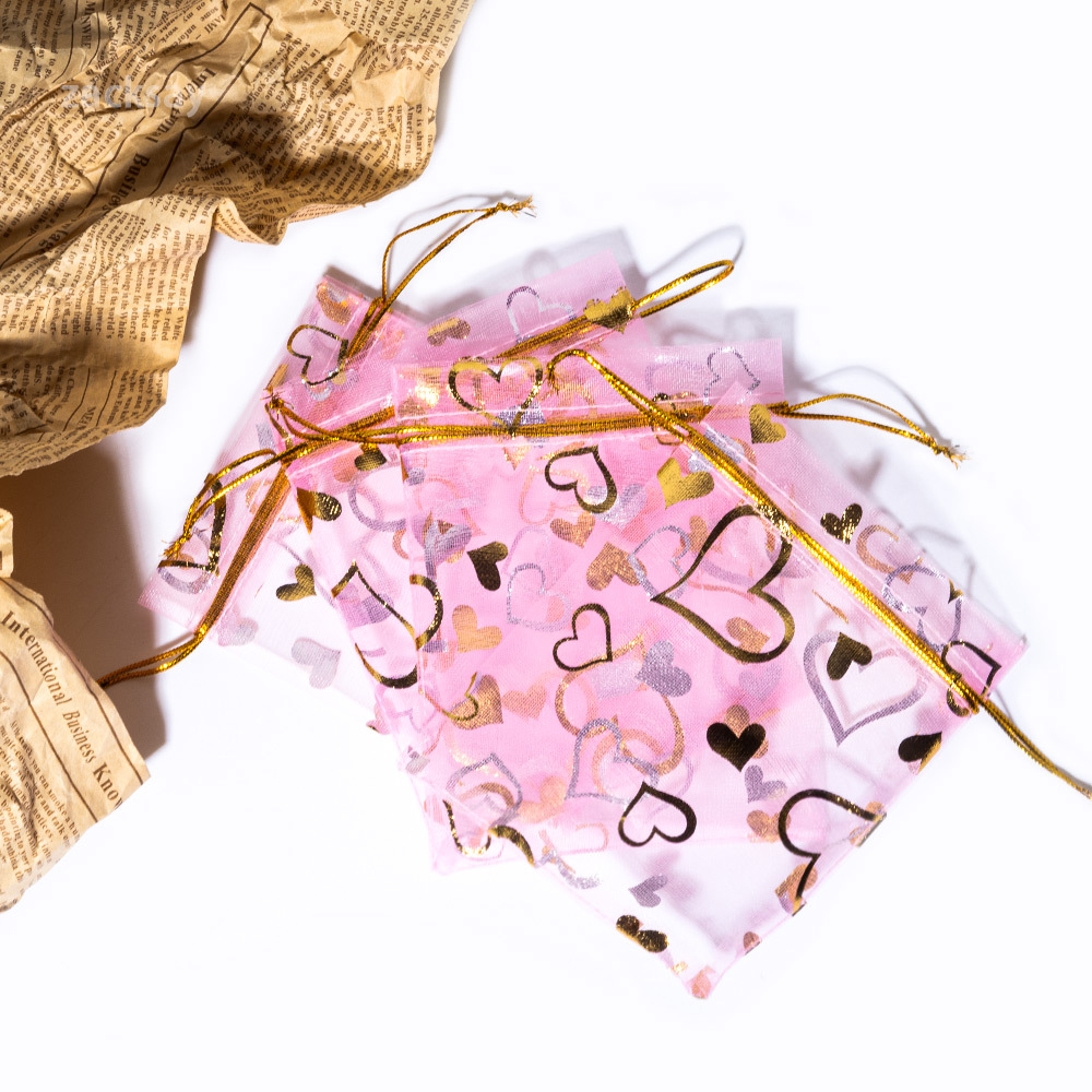 クロスボーダーラブメッシュバッグバレンタインデー小さなギフトバッグラブピーチオーガンザ巾着ポケットバッグピーチハートガーゼバッグ