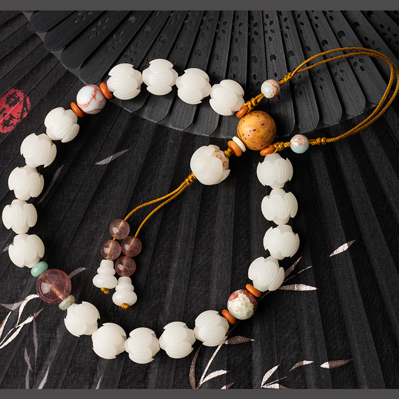 菩提根雕莲花手串清宮十八子白玉菩提手持ち仏珠圧襟チャイナドレスストラップ女