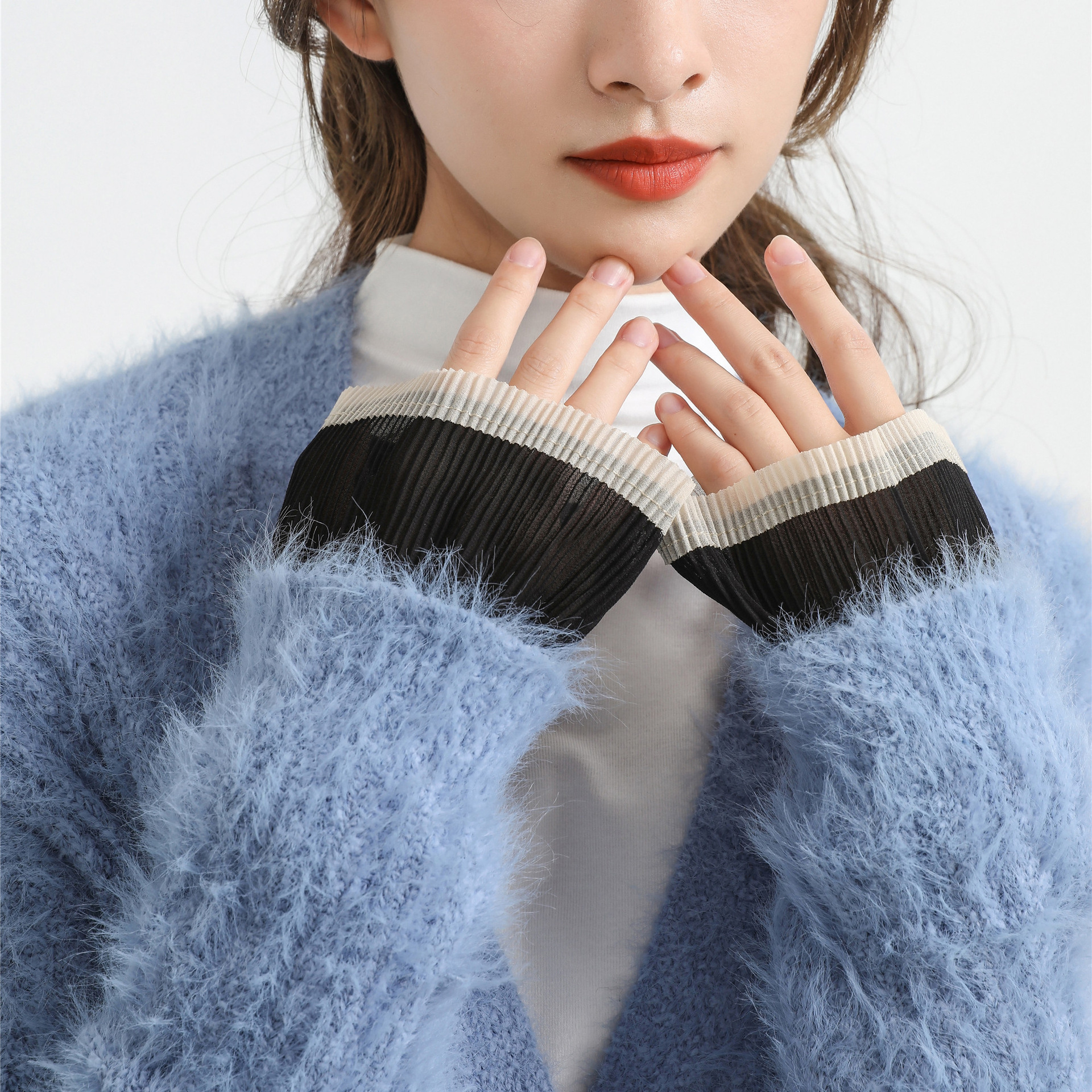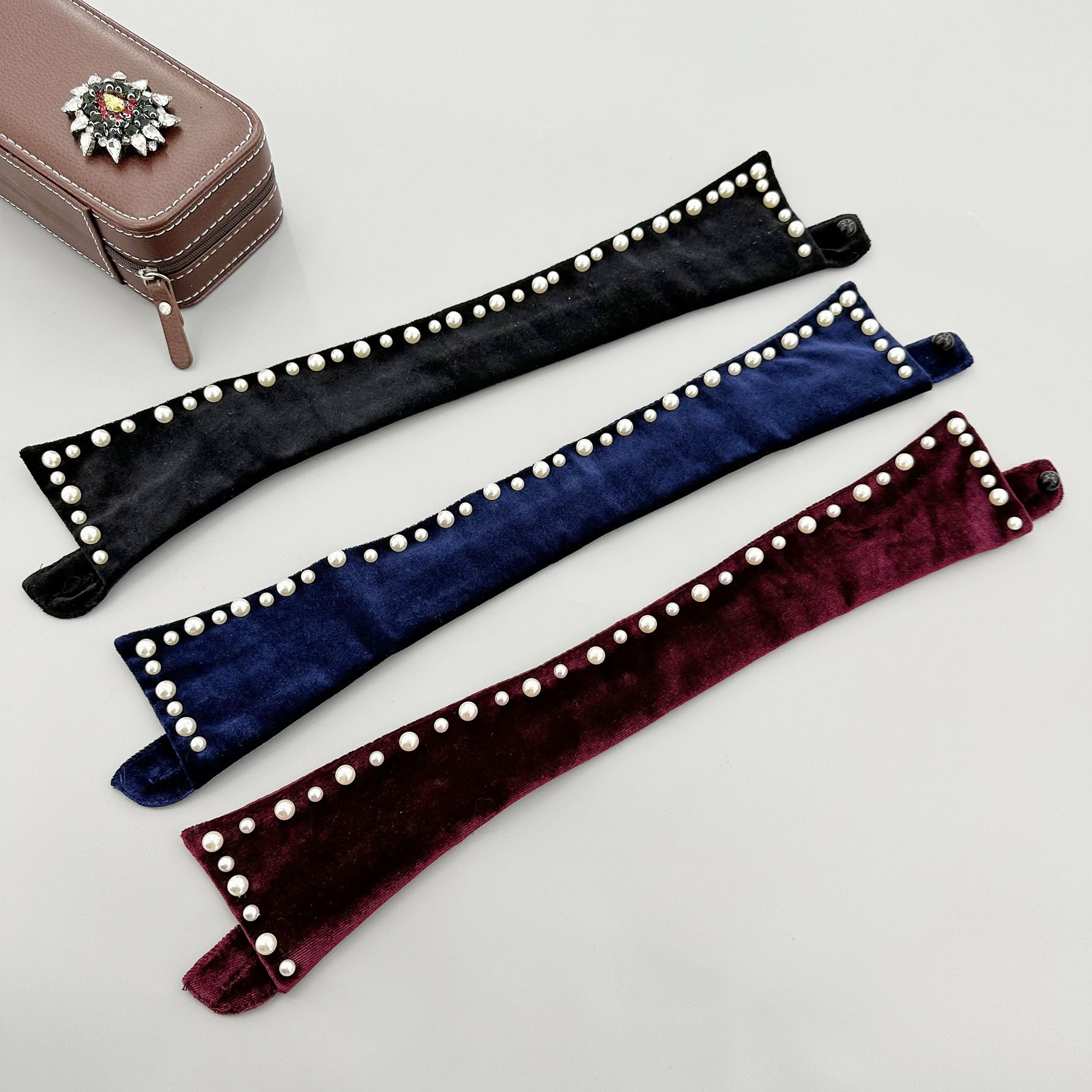 メーカー直販の新型ベルベット生地に真珠の偽襟を加える