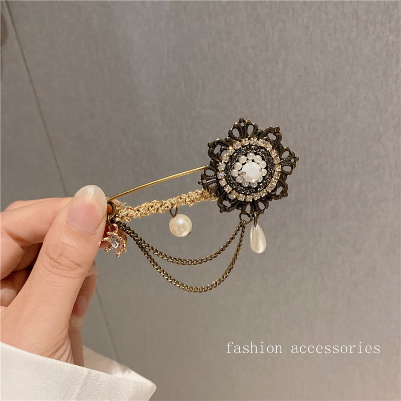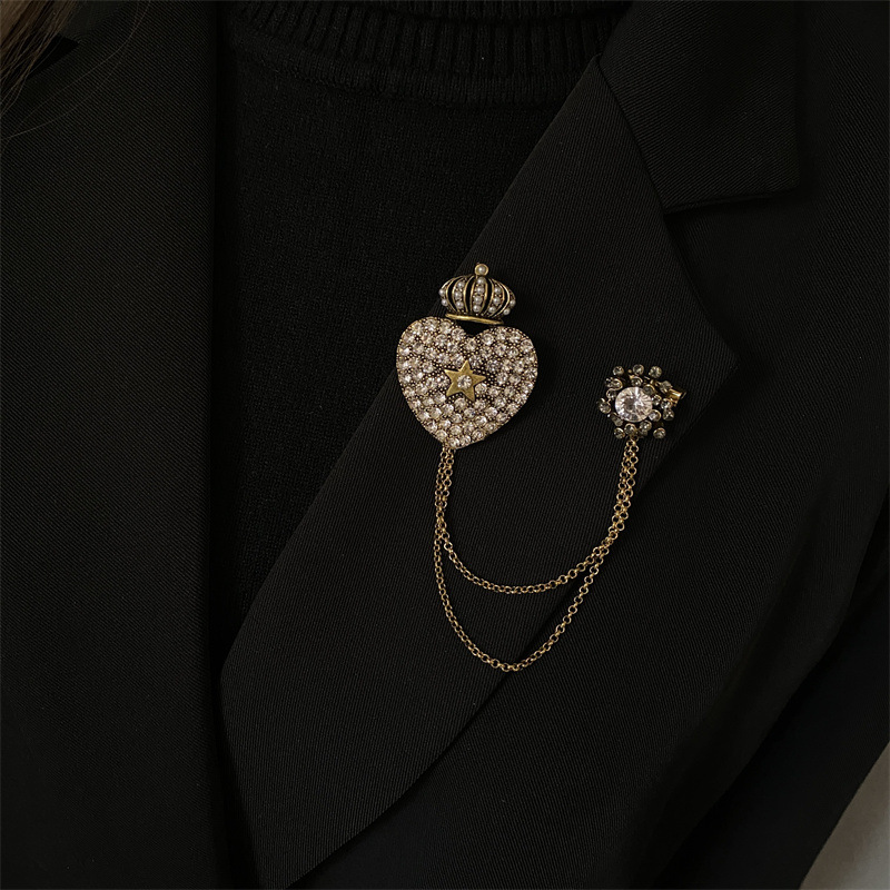 韓国の東大門は古い色のドリルの真珠のチェーンの王冠の愛のブローチの女性のファッションの潮男の宮廷風の復古をします。