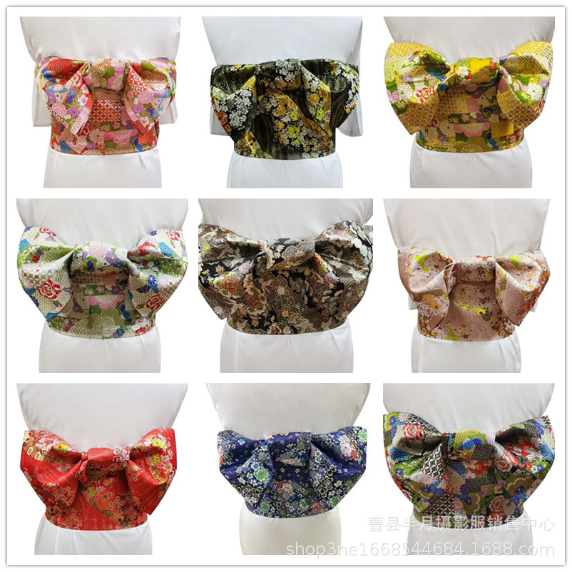 着物の腰の蝶結びのジャカードの錦の多色の浴衣の装飾は日本の着物の定型の写真の蝶結びを配合します。