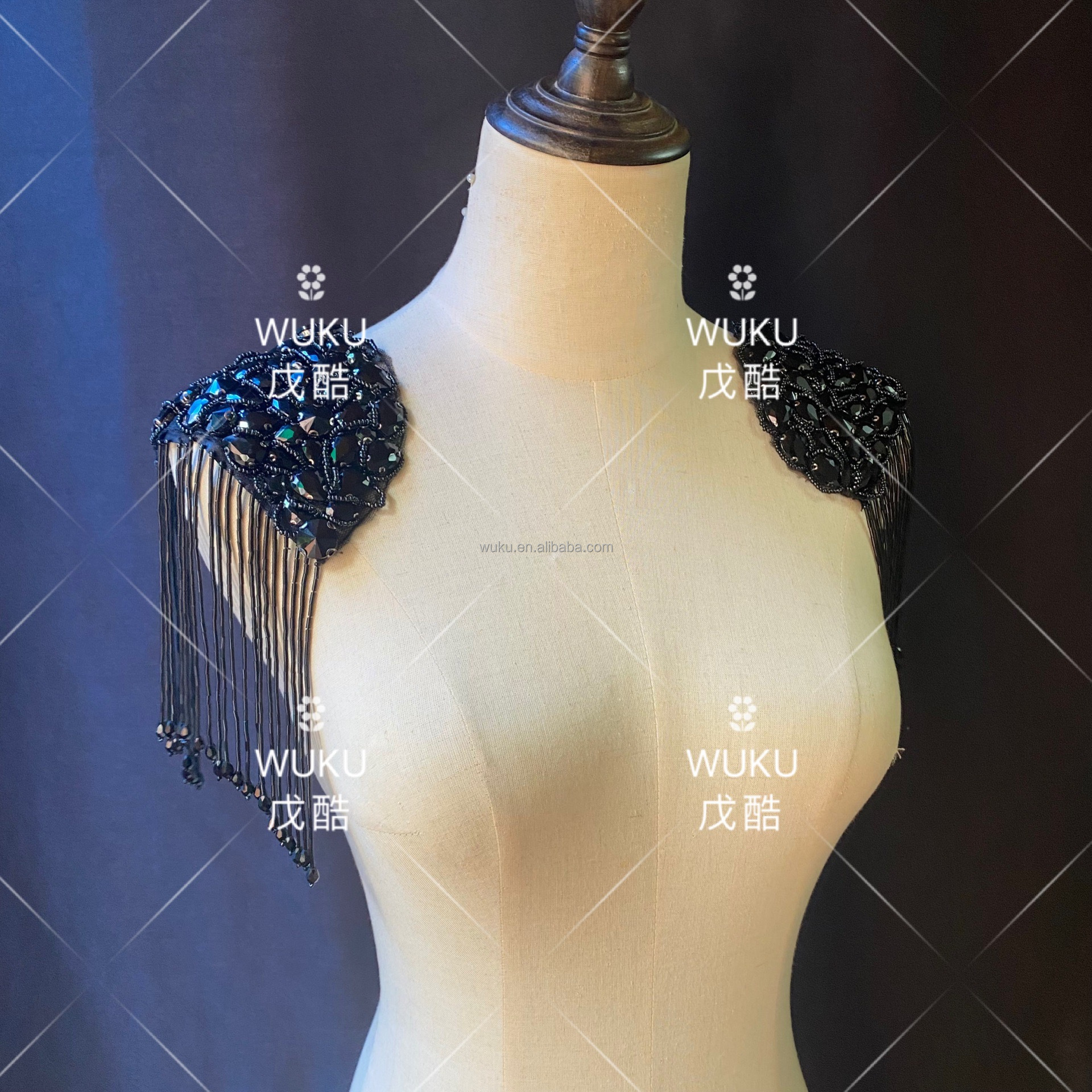 ペンクール2022流蘇肩飾り肩章手作り釘珠ウェディングドレス黒装飾デカールMP-273