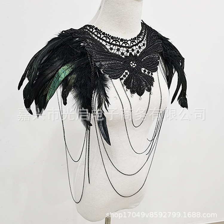 ゴシック欧米風羽毛レースボディチェーン舞台ショーハロウィーン化粧舞踏会服装部品
