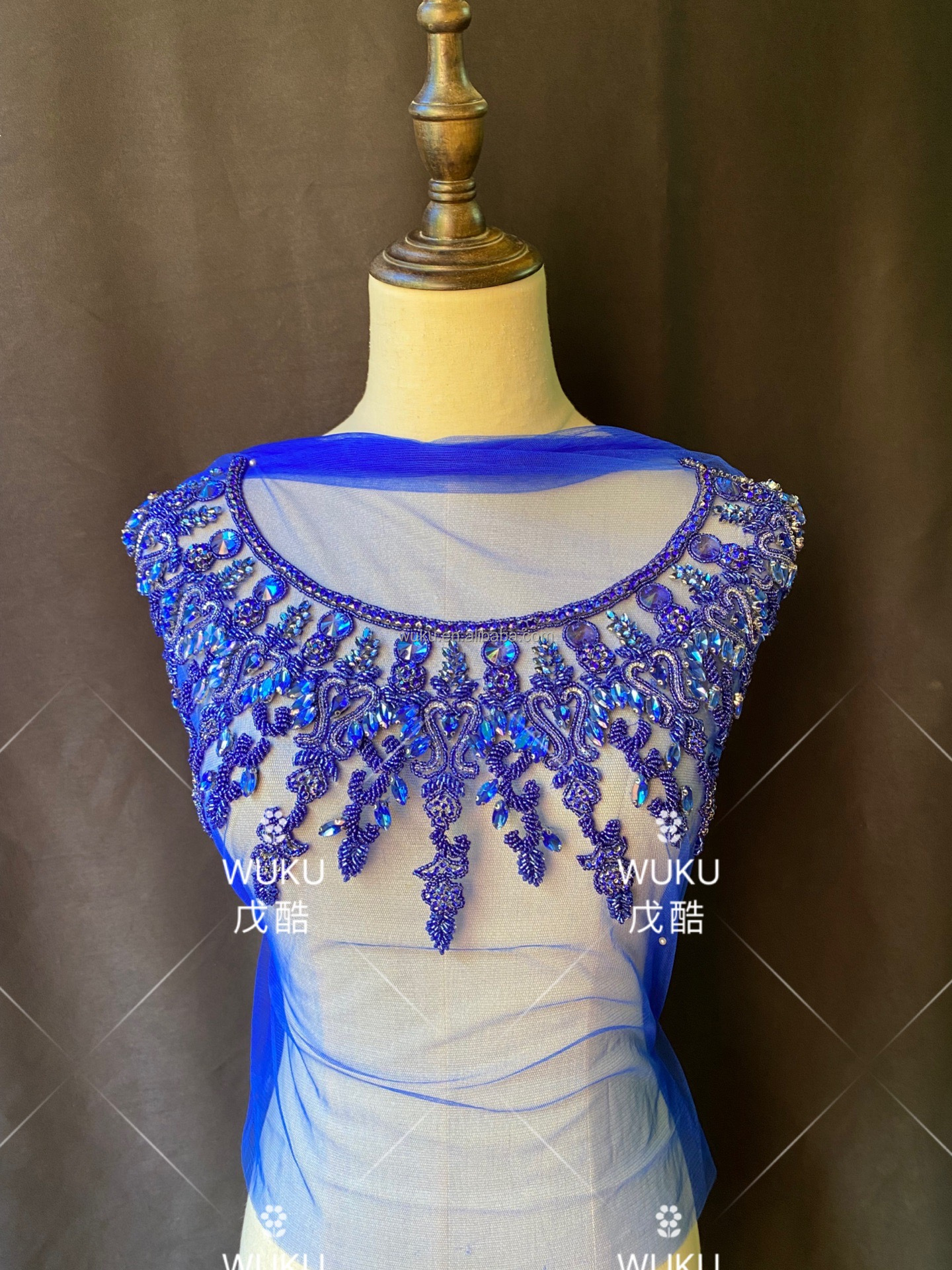 ペンクール2022かぎ針の青い前幅の手作りのビーズのウェディングドレスの深いvネックの装飾のデカールのMP-265