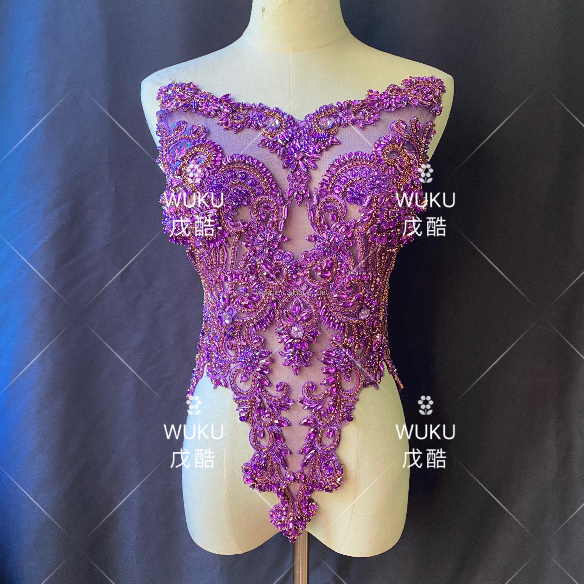 ペンクール2021新品37X54cmハンドメイドスパイクビーズウェディングドレスレースアップリケ紫LA-280