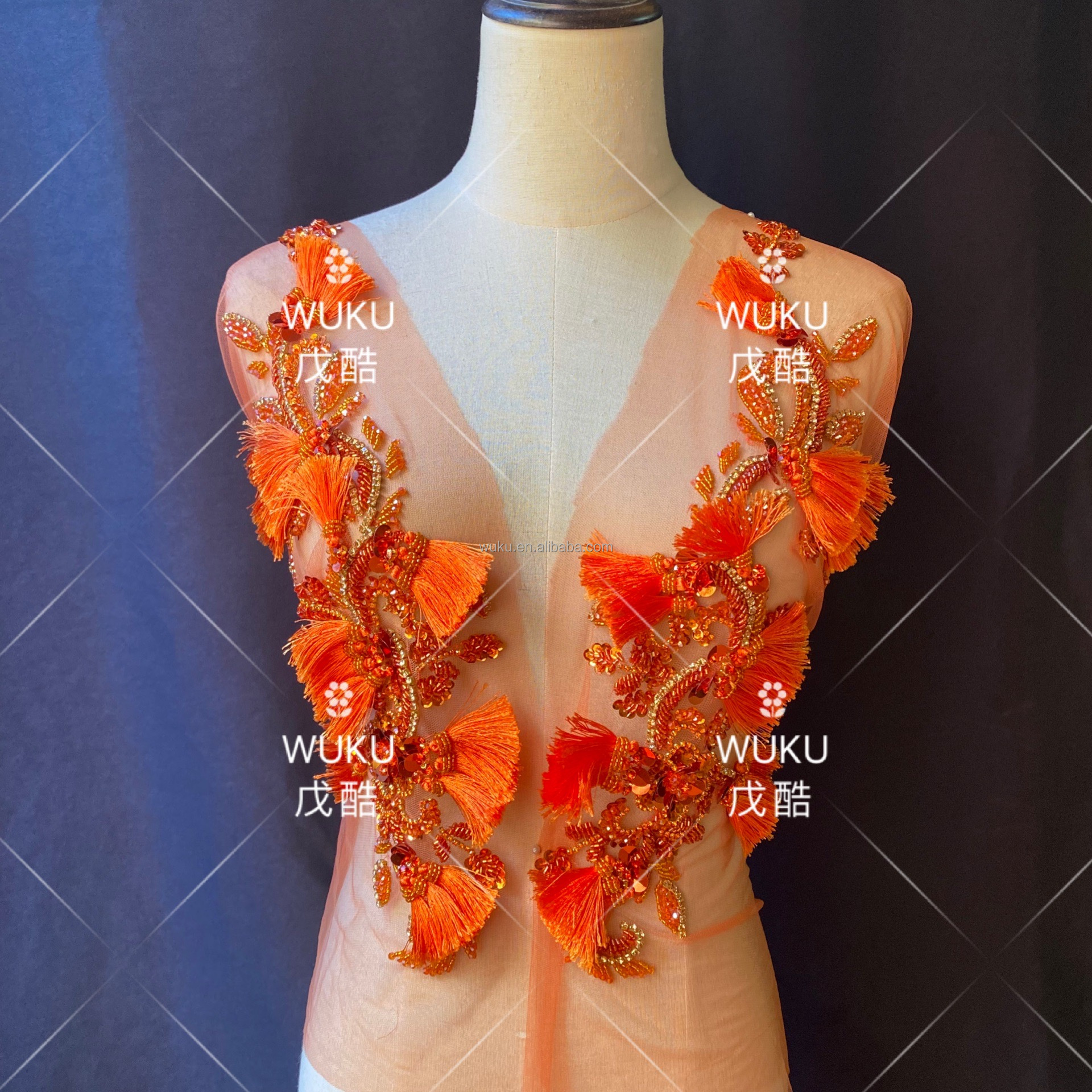 ペンクール2022かぎ針タイプ16x38cmオレンジ色の中国風フリンジウエディングドレスの花MP-58