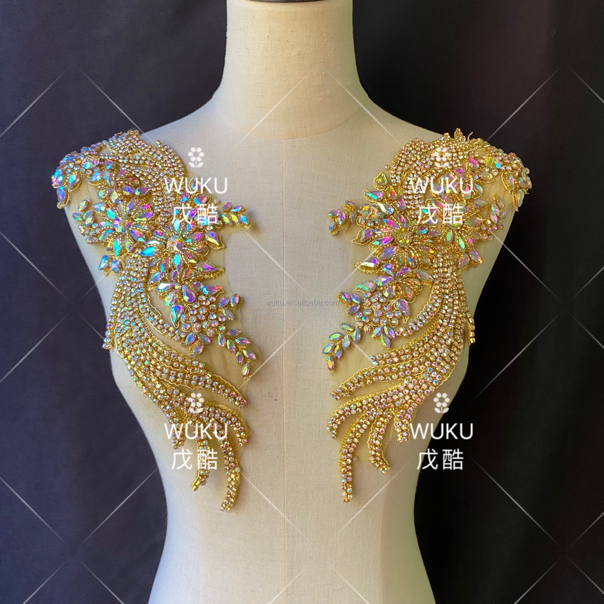 ペンクール2022新型金AB対花15x30cm手作り釘珠ウェディングドレス装飾デカールLA-434