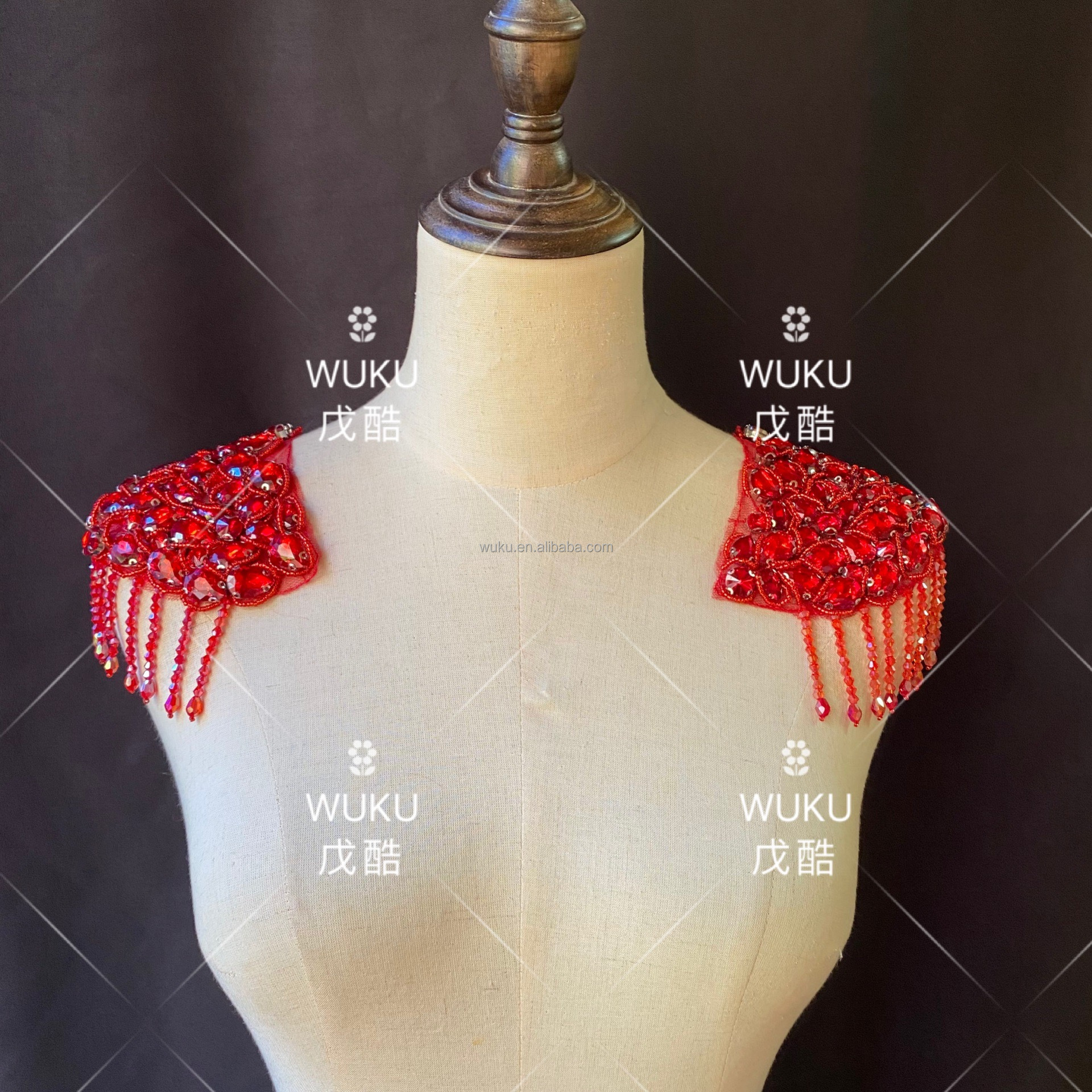 ペンクール2022手作りフリンジ肩飾り肩章手作り釘珠ウェディングドレス赤い装飾デカールMP-255