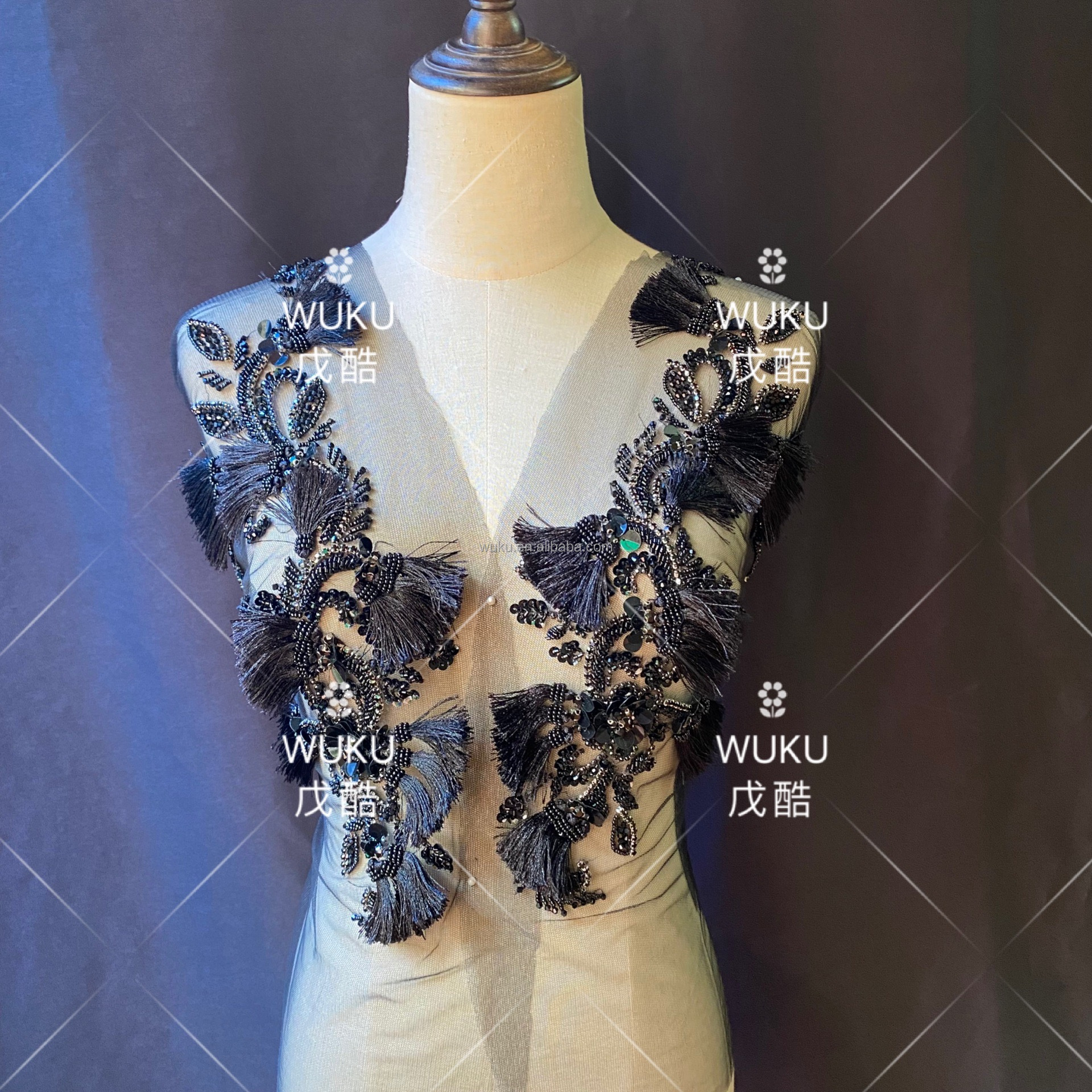 ペンクール2021かぎ針の新型16x38cm黒色中国風フリンジウエディングドレスの花MP-58