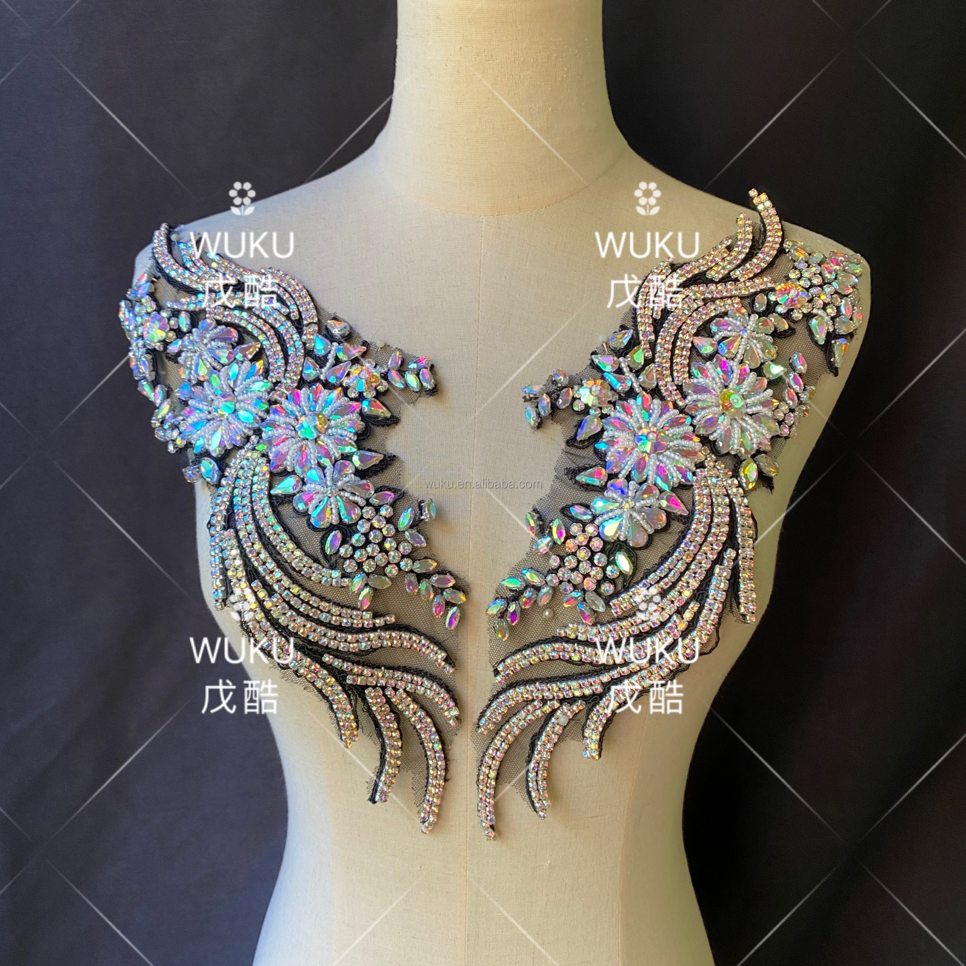ペンクール2022黒地AB色対花15x30cm手作り釘珠ウェディングドレス装飾デカールLA-434