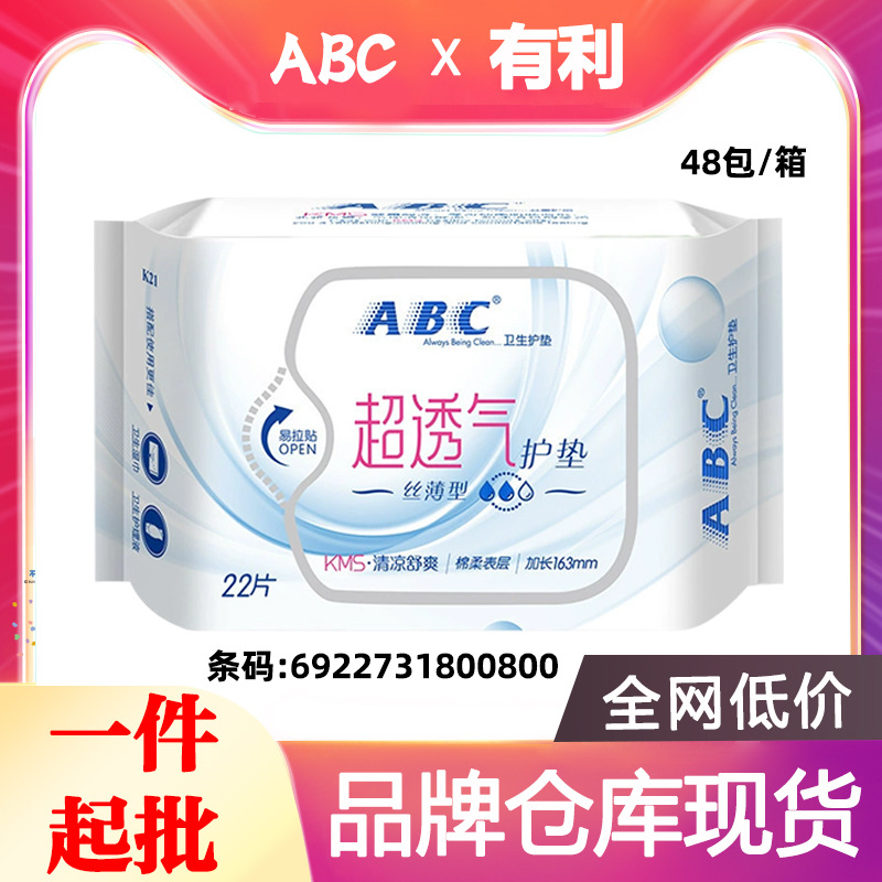 ABC衛生保護パッド163mm糸薄綿柔22枚全シリーズ茶樹植箱卸売り代理0800