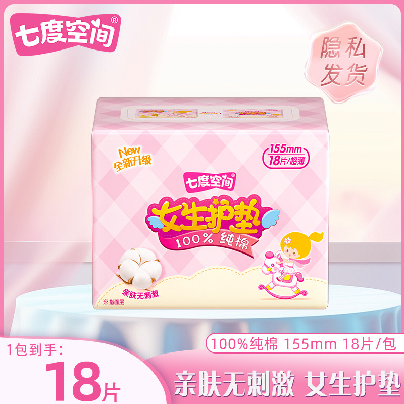 七度空間保護マット155mm女性純綿超薄型通気性小衛生叔母タオル全箱バッチ公式純正品