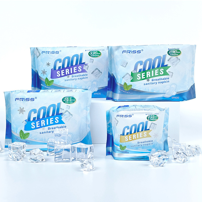 ミント清涼保護マット155ミニタオルフィリス英語包装冷感生理用ナプキン輸出対外貿易卸売り