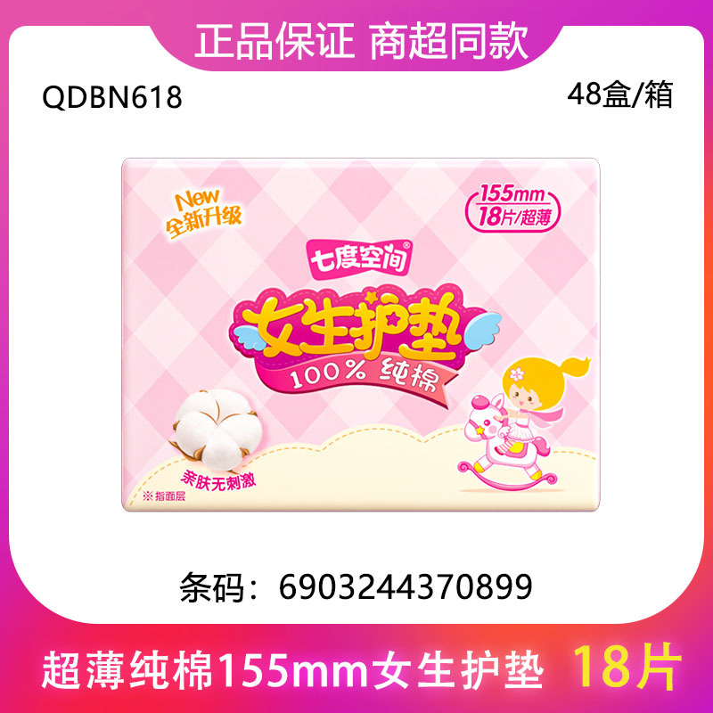 Seventh Space ガールズ ガールズ パンティ パッド 18 枚 純綿 155 ミリメートル 日常使用 フルボックス卸売 正規品 共同購入 QDBN618