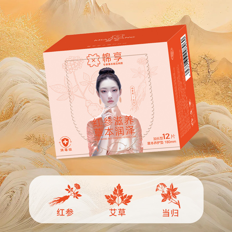抖音綿香生理用ナプキン 薄くて通気性のあるハーブ180MM生理用ナプキン紅参パッド代理販売