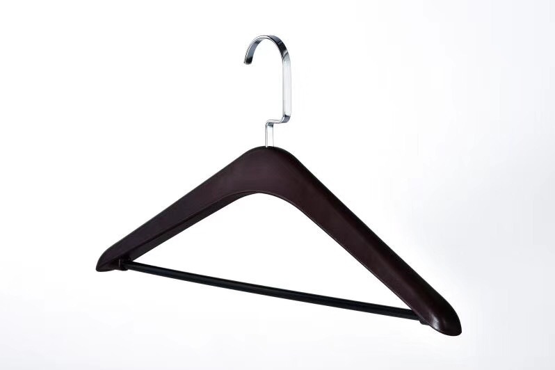 ホテルの衣料品店のスーツハンガー、厚みのあるクリップ付き木製ハンガー、男性と女性用の木製の幅広の肩の衣類サポート、光沢のある