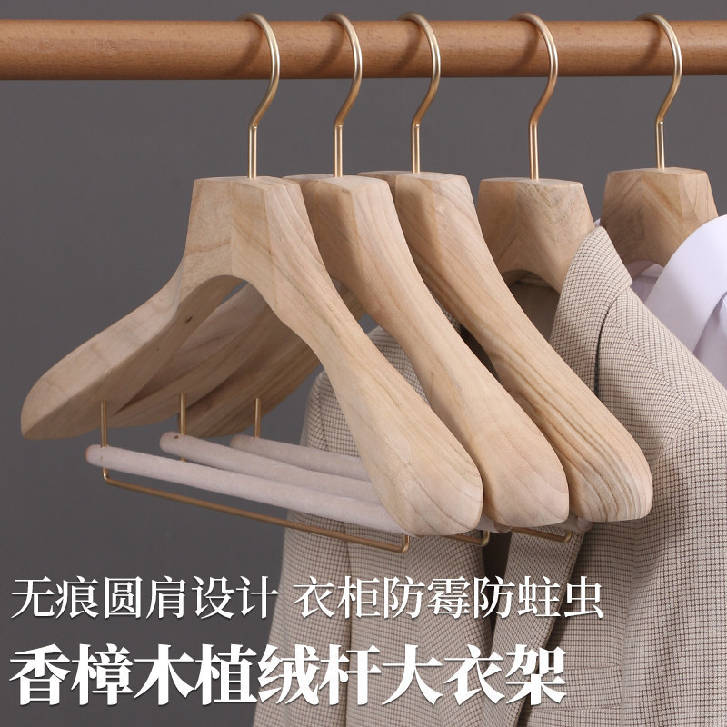 香樟木防虫厚手木ハンガー家庭用男性女性原木幅肩無痕スーツ服装成人コート