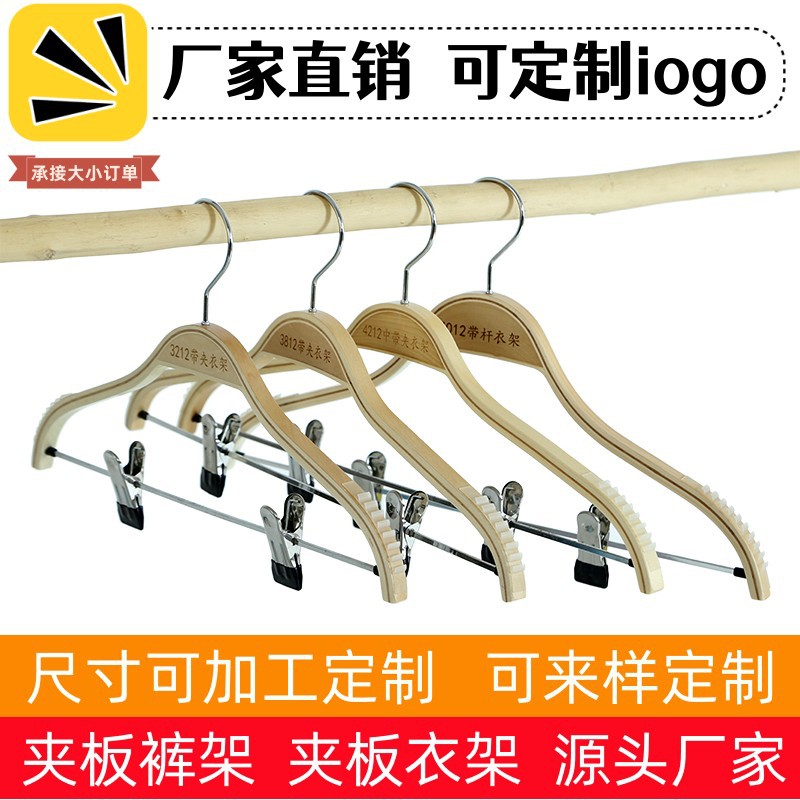 工場クランプ原木ワンピースセットハンガー滑り止め服装店男性婦人服木製ハンガークリップ付きハンガー卸売り