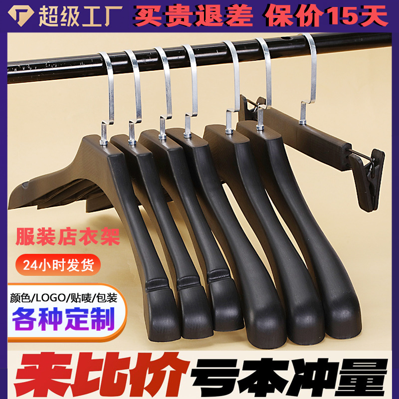 衣料品店用衣類ハンガー、無垢材黒色衣類ハンガー、卸売木製ハンガー、植毛滑り止めゴム塗装木製ハンガー、耐久性のある吊り下げハンガー