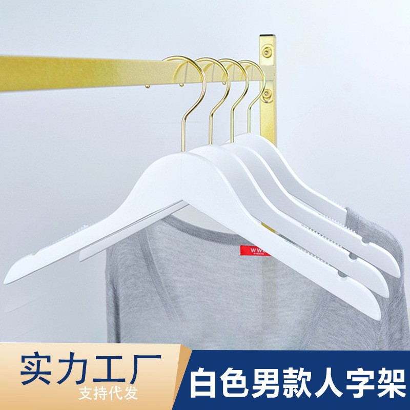 衣料品店用の白い無垢材ハンガー、卸売、男性用木製滑り止めハンガー、木製ハンガー、ズボンクリップ卸売