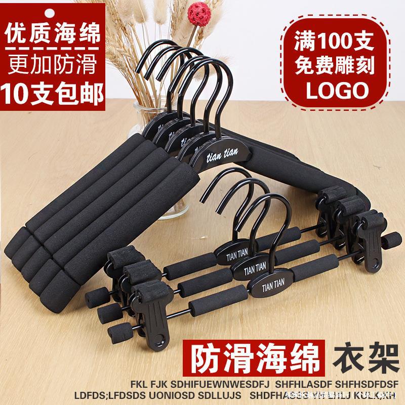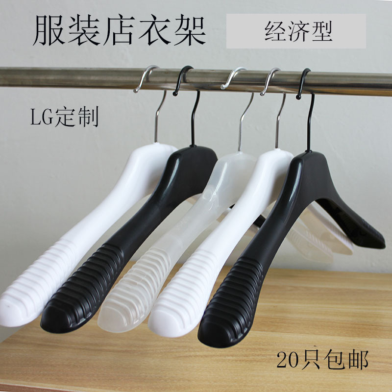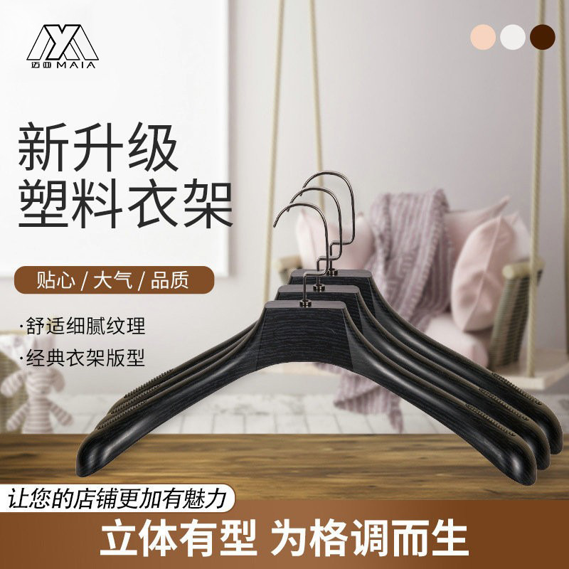 現物服装店ハンガープラスチック黒色服ハンガー男性服成人服掛け家庭用服支え卸売り