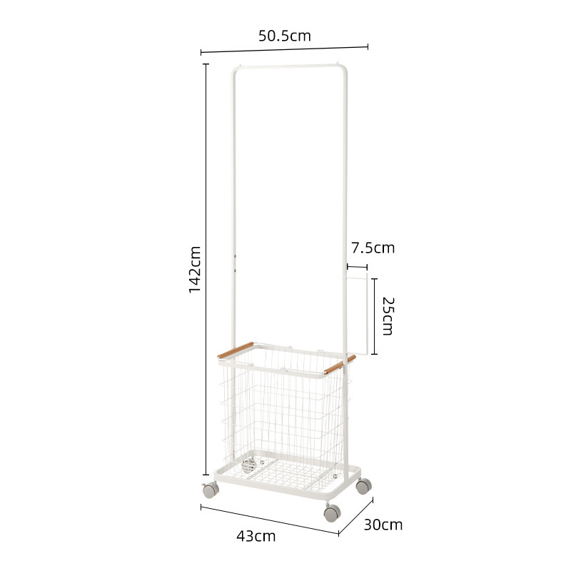 Z霜山物干しラック簡易家庭用ハンガーラック床置き干しハンガーケヤキ取っ手洗濯物バスケット滑りL