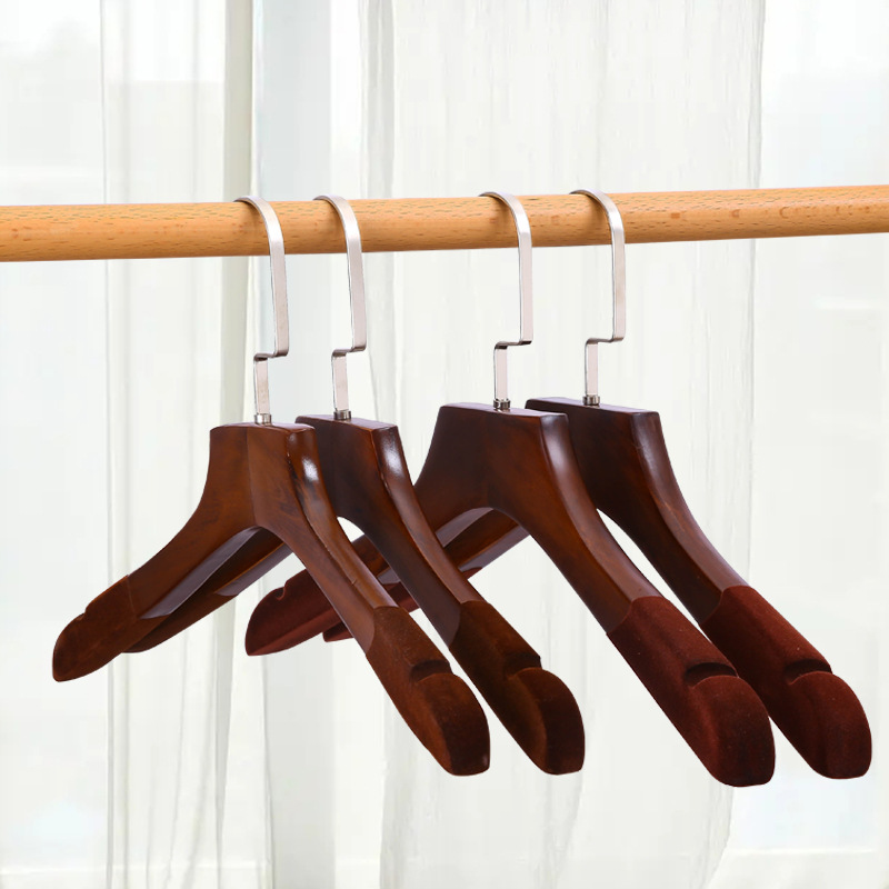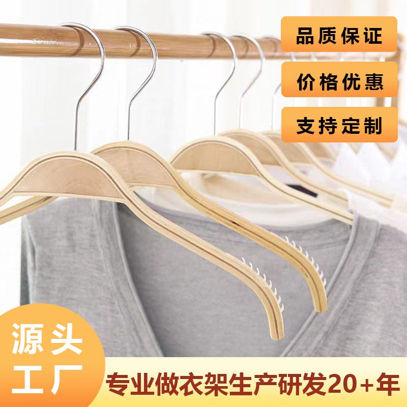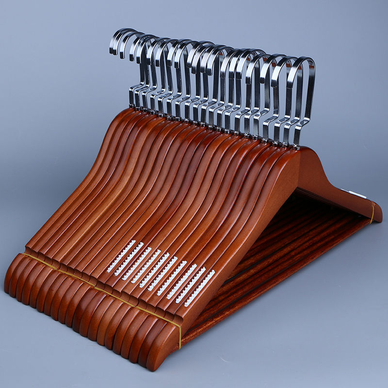 無垢材衣類ラック卸売ホテル衣料品店家庭用木製衣類サポート木製シームレス滑り止め厚い衣類ハンガー大人用