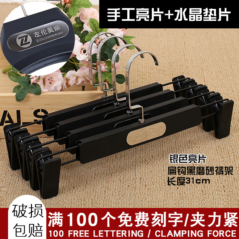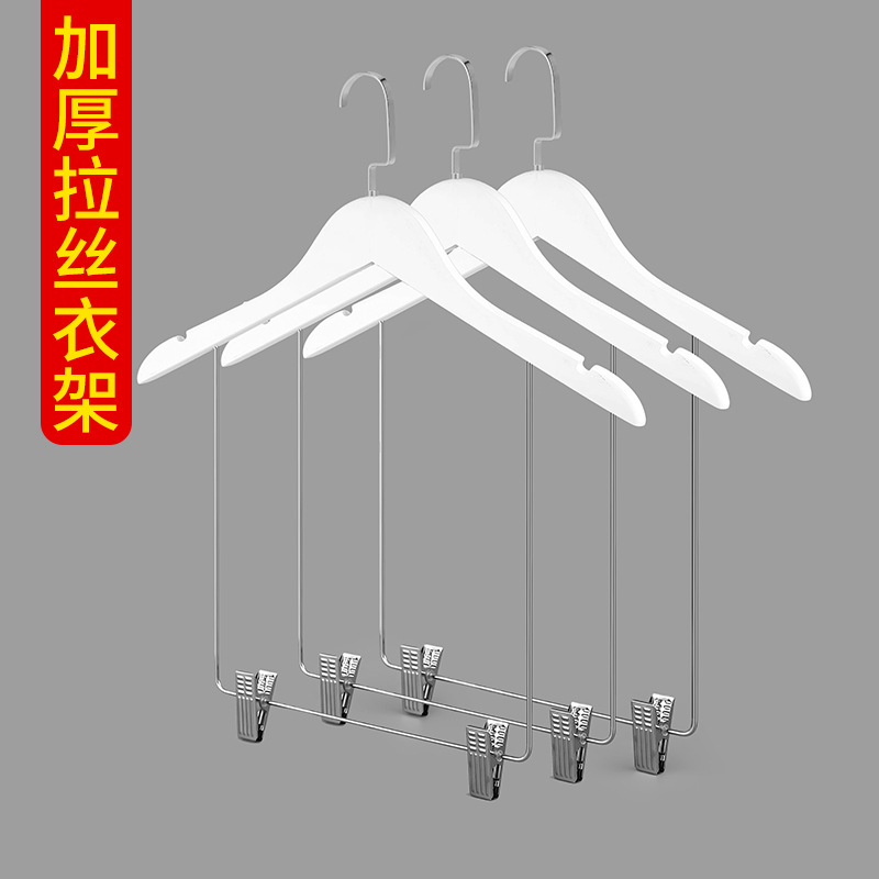 中実のプラスチックの板は木の白いハンガーのズボンをまねて服を挟んで支えます。