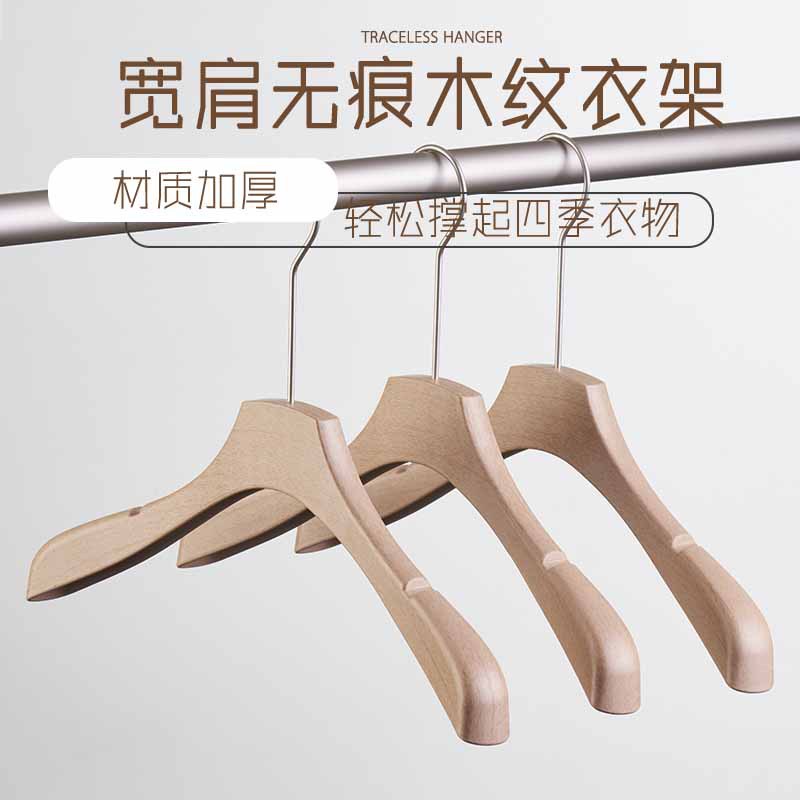 無垢材の洋服ハンガー、跡が残らない、膨らまない、厚みのあるスーツ、洋服店のスーツコートラック、洋服ラック、物干しラック