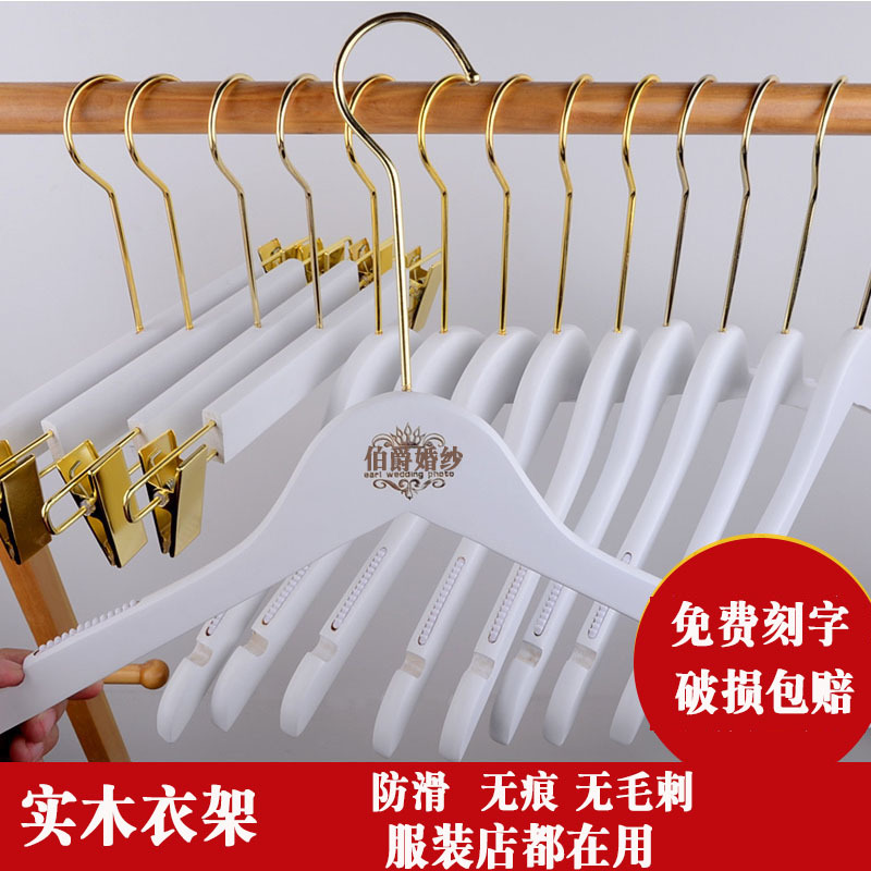 純白の実木ハンガー10本から服屋の映画館のウェディングドレスの高級木製ハンガーの滑り止めの跡がありません。