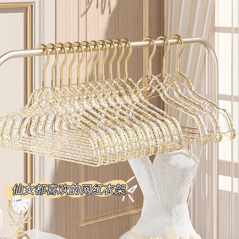 Ins風少女心透明PETフラッシュハンガー金粉水晶服掛け洋服店用模造アクリルハンガー