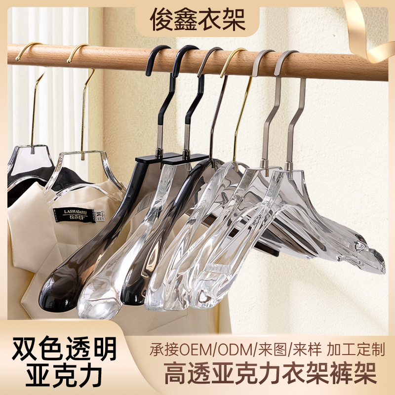 レディース衣料品店アクリル防肩角太く透明クリスタルハンガーズボンクリップ無痕滑り止めハンガー卸売